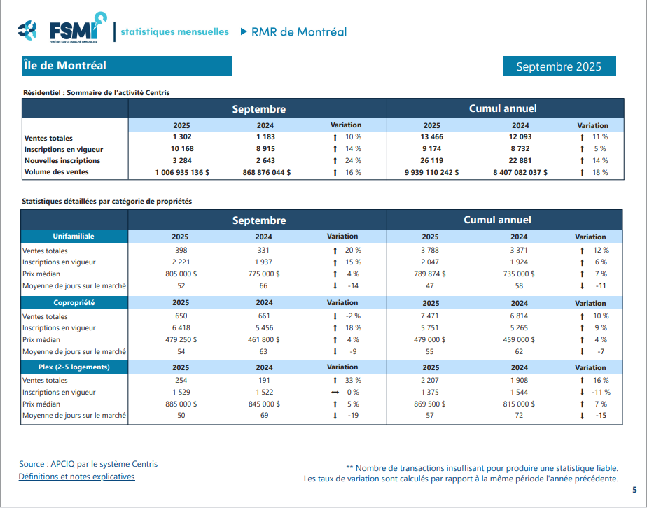 Voici les statistiques du marché immobilier pour le mois de sept 2025